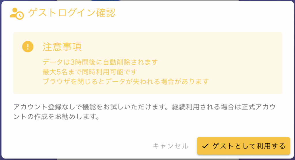 「ゲストとして利用する」を押したらゲスト用のダッシュボードが現れます。