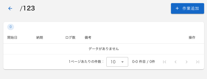 追加した案件に入って「作業」を追加する