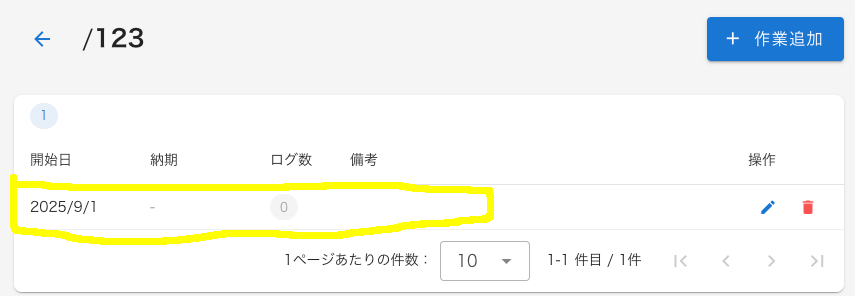 - 追加した案件に入って「作業」を追加する