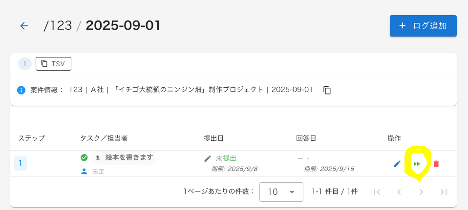 ログ一覧にはステップ1に「絵本を書きます」というタスクでログが記入されていると思います。
