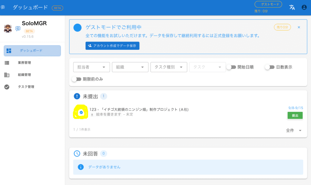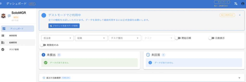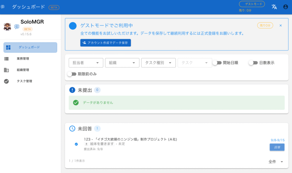 祝日なので遊んでいっていただければと思い、SoloMGR にゲストモードを作ってみました。